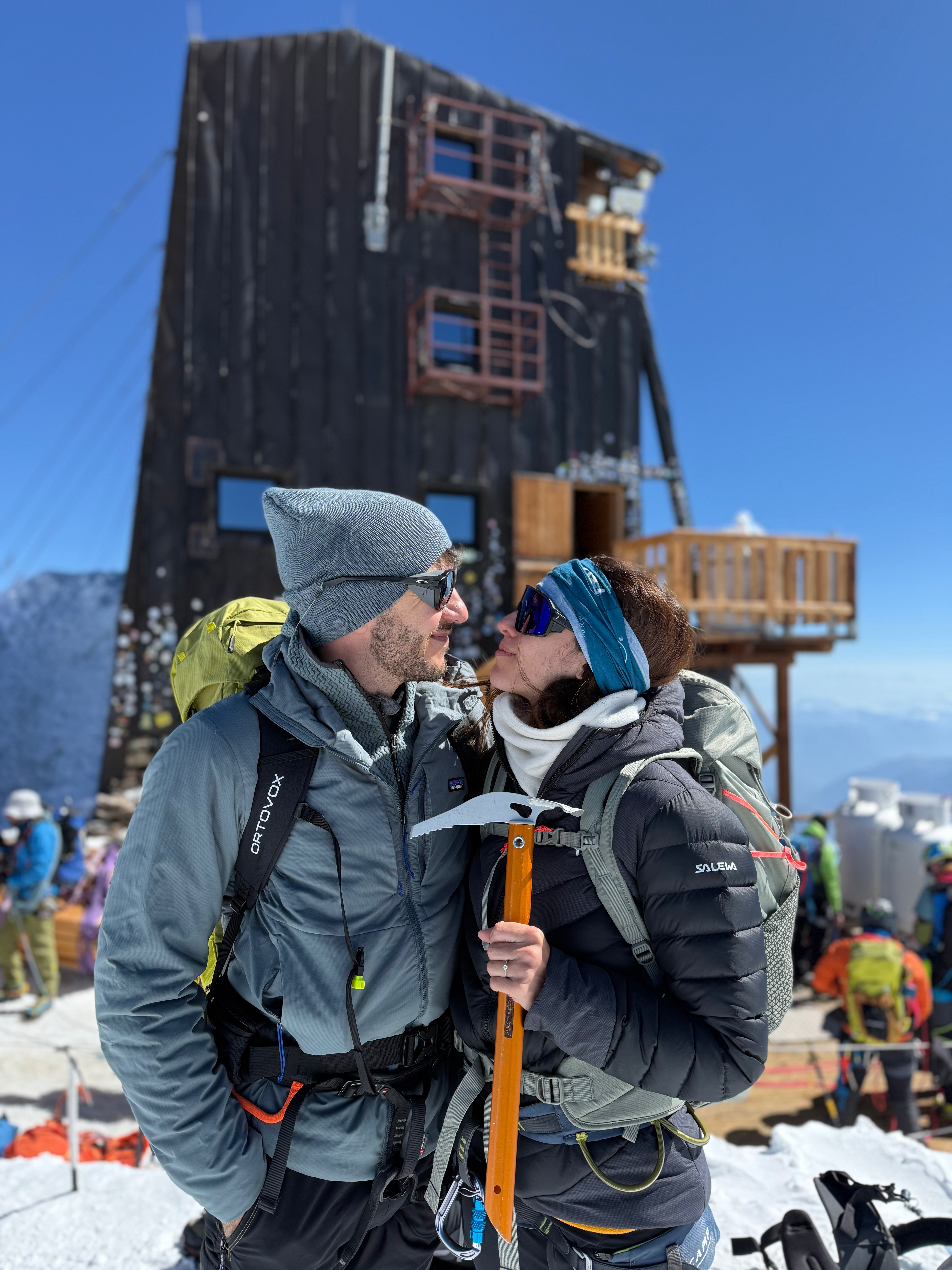 Niente classiche cene a lume di candela per noi: la vetta più alta del nostro itinerario è arrivata alla Capanna Margherita, a quota 4.554 metri (contati uno per uno con i polmoni in fiamme). Diciamocelo, Ale ha usato una strategia geniale: la conquista per sfinimento. Tra l’ipossia e la fatica immensa, Marti non aveva letteralmente le forze per scappare! Ma tattiche a parte, lassù, abbracciati dal silenzio assoluto e dal tetto del mondo, la fatica è sparita davanti a quella domanda. Una vetta sudata e bellissima, che ci ha tolto definitivamente quel poco di fiato rimasto.